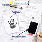 Rączka lub stópka dotyka wyłącznie czystej powierzchni, a odcisk pojawia się na kartce