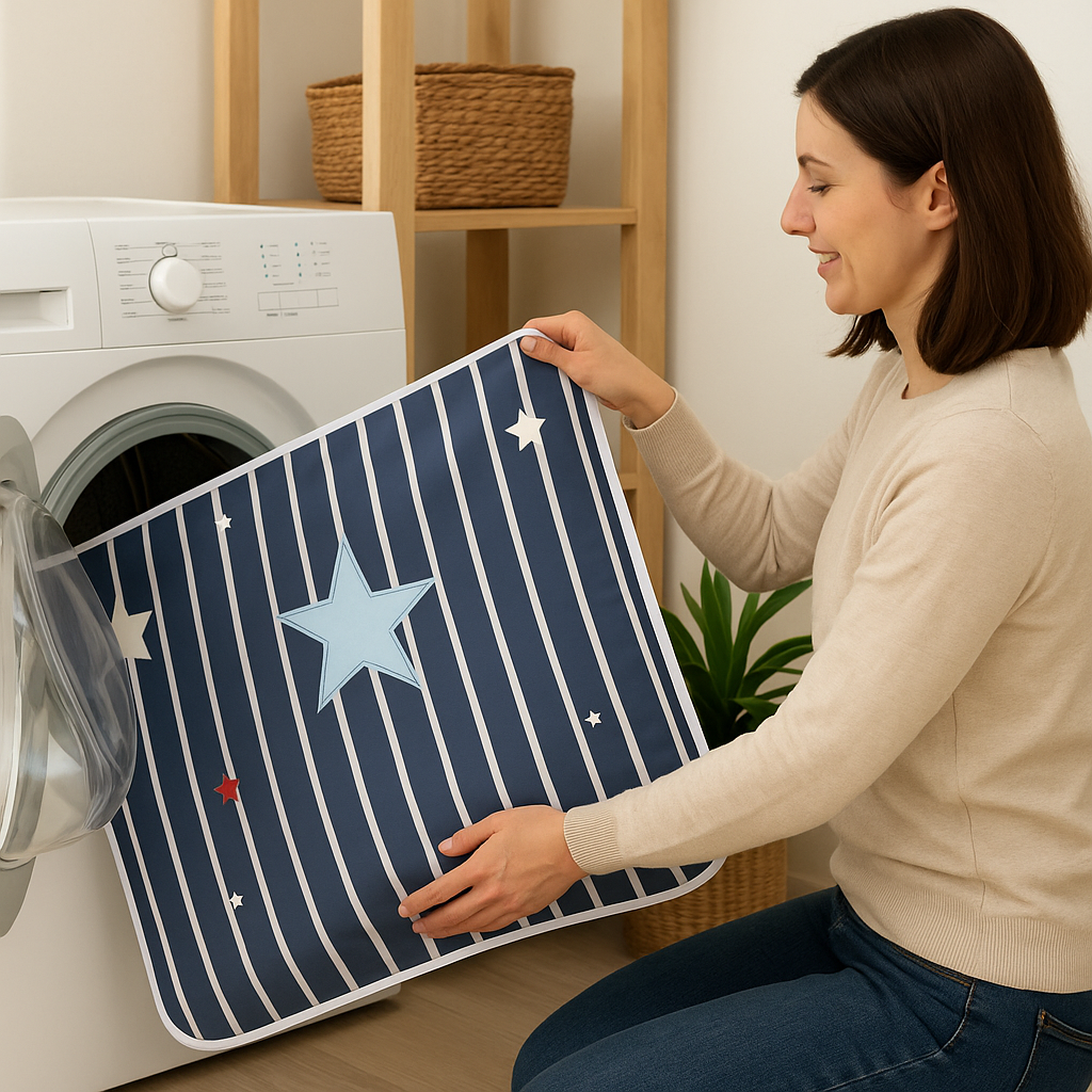 Matę można prać w pralce w 40°C, bez wybielaczy i zmiękczaczy. Można suszyć w suszarce w niskiej temperaturze. Nawet po 200 praniach zachowuje pełną wodoodporność.