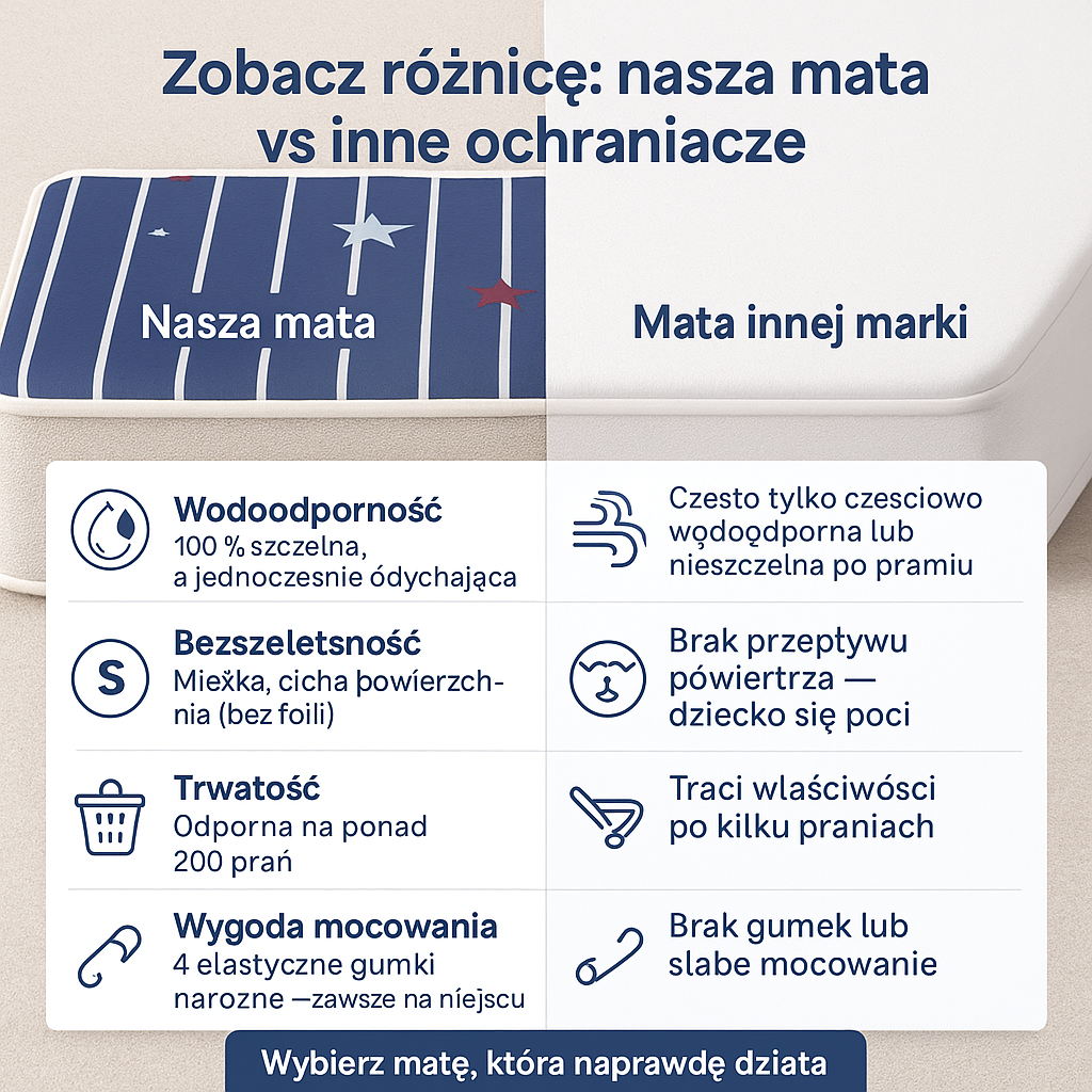 Bo to spokój dla rodziców i komfort dla dziecka — bez nocnych pobudek i zmartwień o materac.