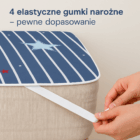 4 elastyczne gumki narożne pewnie trzymają matę w miejscu, nawet przy najbardziej aktywnych maluchach